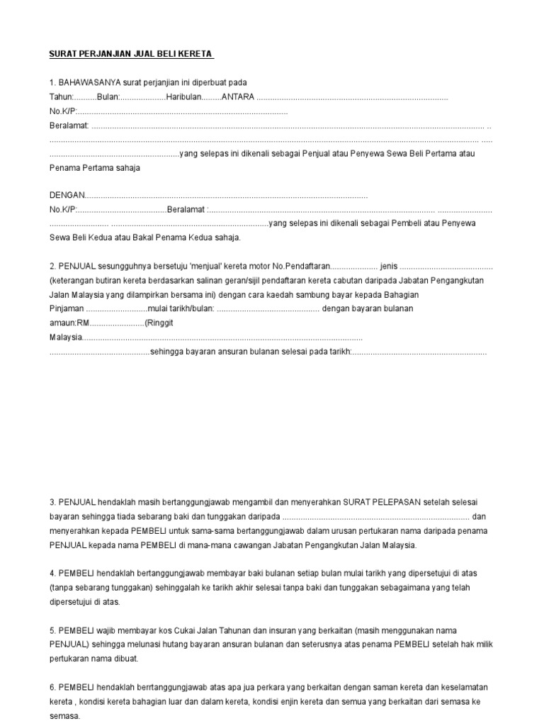 Prosedur Undang Undang Pinjaman Kereta Sewa Beli Bahagian 4 Sambung Bayar Cerita Hutang Bank Dan Anda from i1.wp.com Anda sedang membuka postingan contoh format surat perjanjian yang berada pada kategori contoh surat dengan tag postingan berikut contoh categories. Contoh surat hitam putih sambung bayar kereta. Preview contoh surat keterangan magang kerja dari. Kandungan surat perjanjian adalah berbeza mengikut rumah sewa tersebut, namun begitu, secara umumnya ianya boleh dikatakan sama dari. Contoh surat perjanjian sambung bayar kereta kerjaya kerajaan. Pembeli wajib membayar kos cukai jalan tahunan dan insuran yang berkaitan (masih. Surat ini bersifat penting karena saat kita telah membeli sesuatu menjadi sebuah bukti yang sah di mata. Buat judul surat perjanjian, contohnya surat perjanjian sewa tanah.