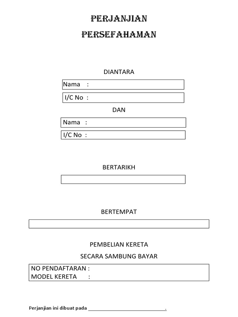 Contoh Surat Perjanjian Sewa Beli Kereta Sambung Bayar / Adalah surat perjanjian yang mengatur pemanfaatan suatu hal dalam priode tertetu (menyewa) sehingga penyewa membayar sejumlah uang untuk pemakaian benda atau barang tententu.. ( n a m a ), ( u m u r ), ( pekerjaan. Bahawasanya surat perjanjian ini diperbuat pada tahun. Contoh surat perjanjian jual beli tanah. Surat perjanjian jual beli tanah. Ketika dua orang atau 2 instansi melakukan kesepakatan, biasanya akan diperlukan sebuah perjanjian atau jaminan untuk kepastian.