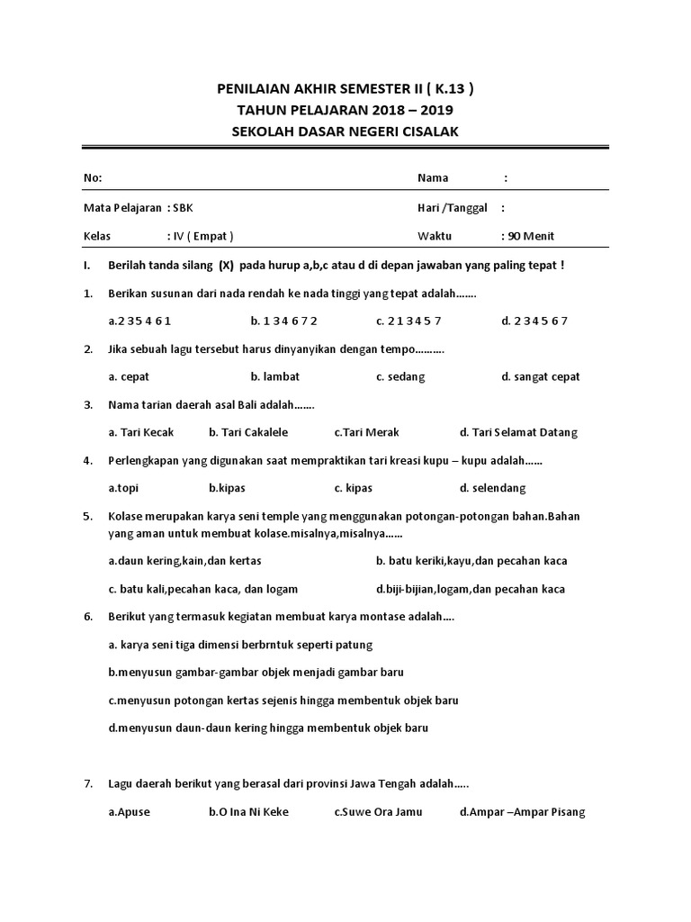 Soal Penilaian Akhir Sem 2 Sbk Pdf from imgv2-1-f.scribdassets.com We did not find results for: Daun kering kain kertas adalah bahan yang aman untuk membuat. Maybe you would like to learn more about one of these? Check spelling or type a new query.